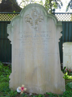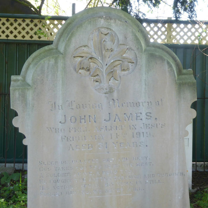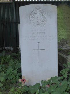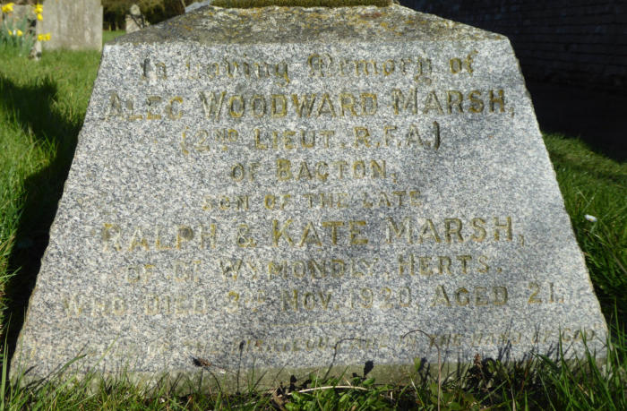 Buried privately in the churchyard, not in a Commonwealth War Grave: